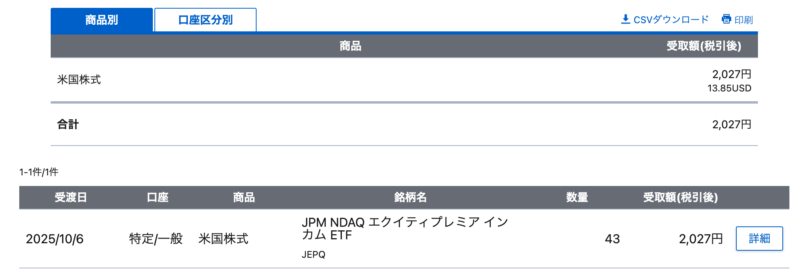 高配当ETF配当金:2,027円(2025年通算:10,102円)